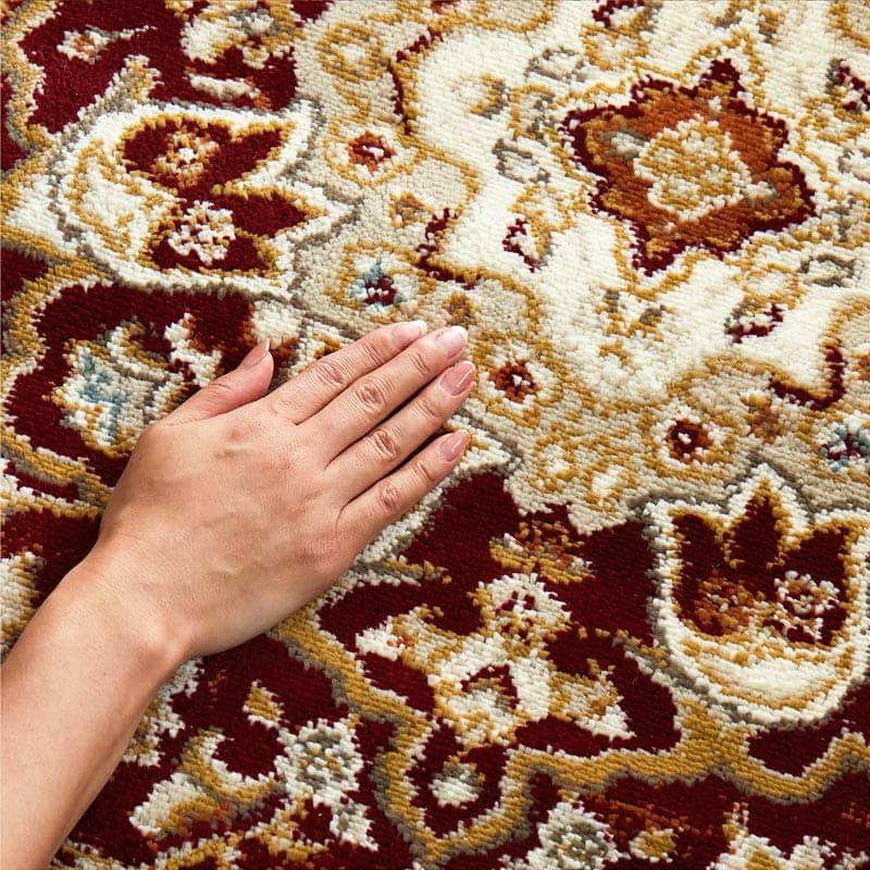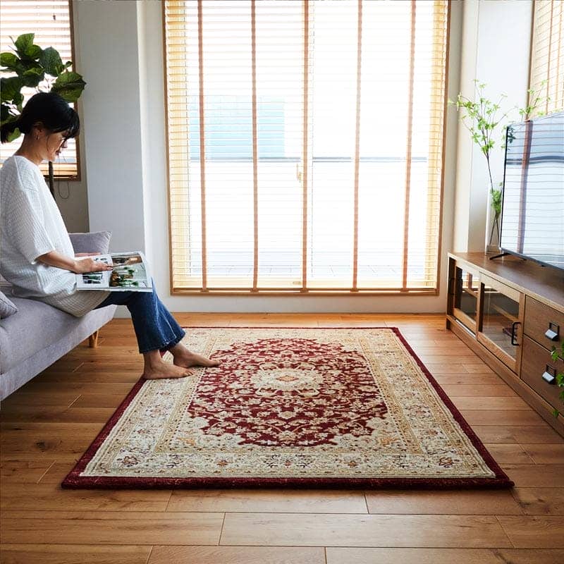 ペルシャ絨毯風のエレガントなデザイン。ヒートセット加工でしっとり柔らかな手触り