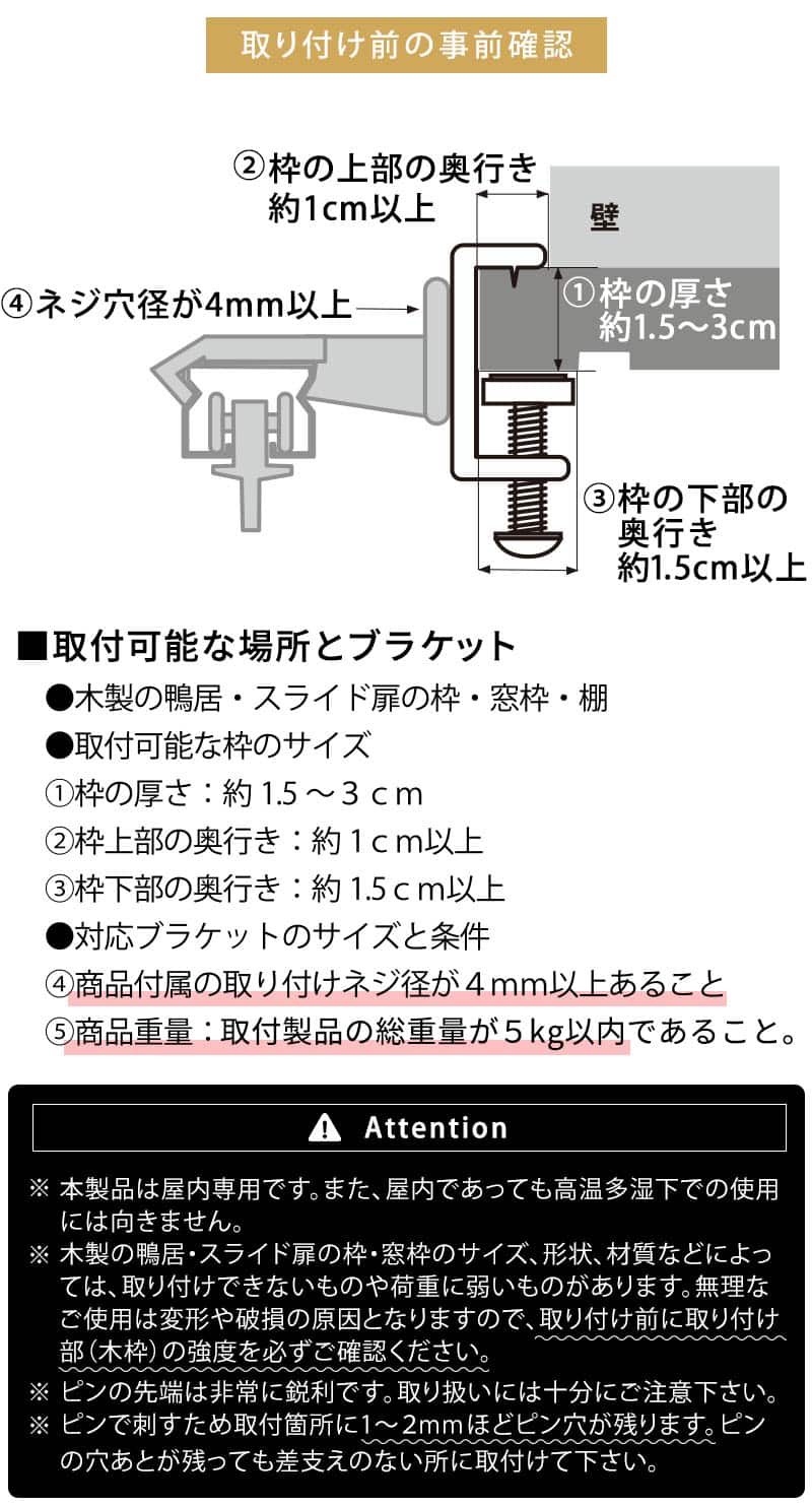 ※取り付け部(木部)の強度を必ずご確認の上、取り付けて下さい。