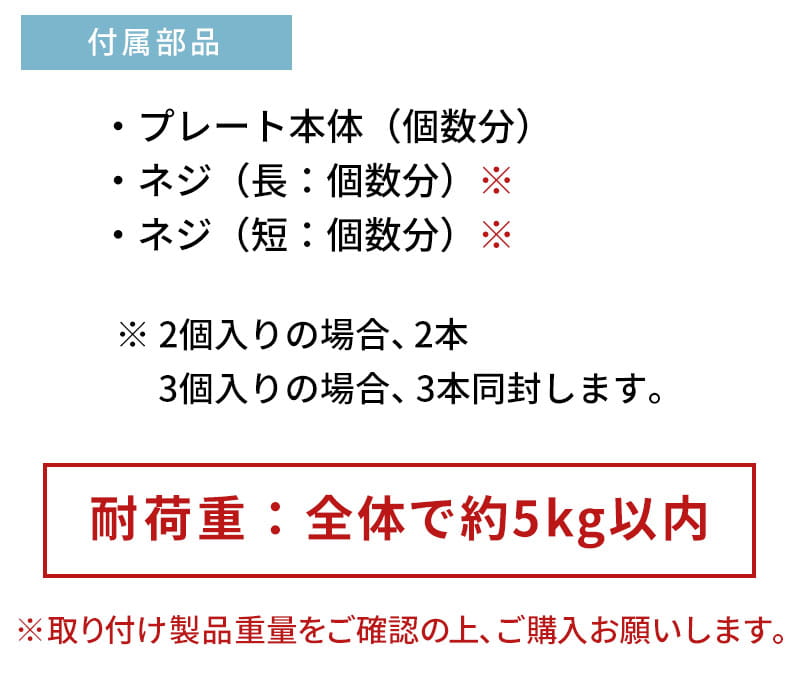 | 耐荷重 | 5kg(※製品全体の重量) |