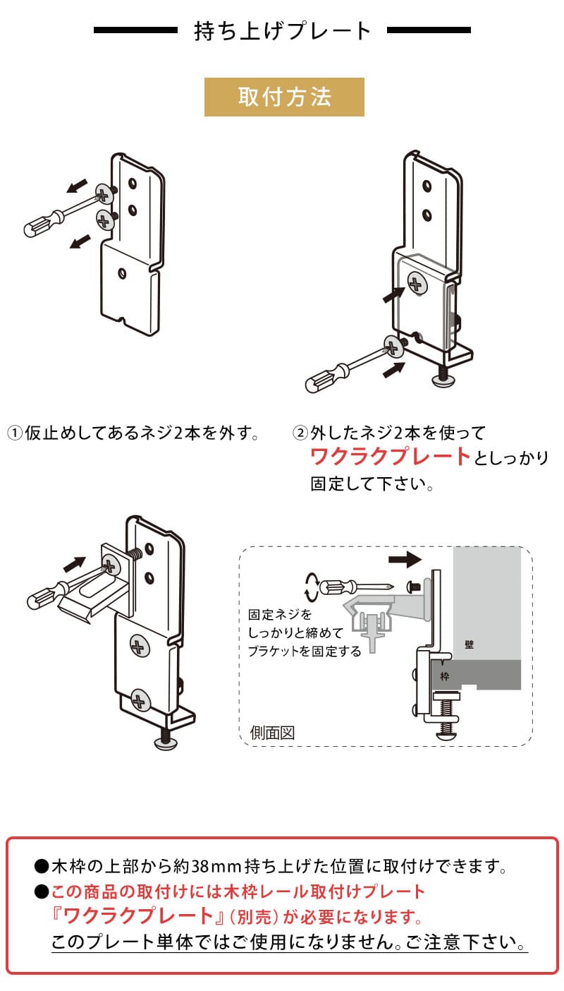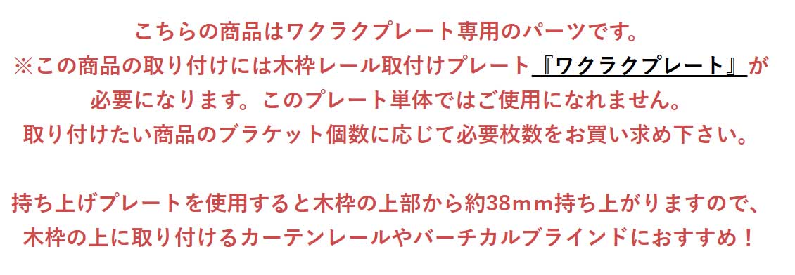 ※この商品の取り付けには木枠レール取付けプレート『ワクラクプレート』(別売)が必要になります。このプレート単体ではご使用になれません。ご注意ください。