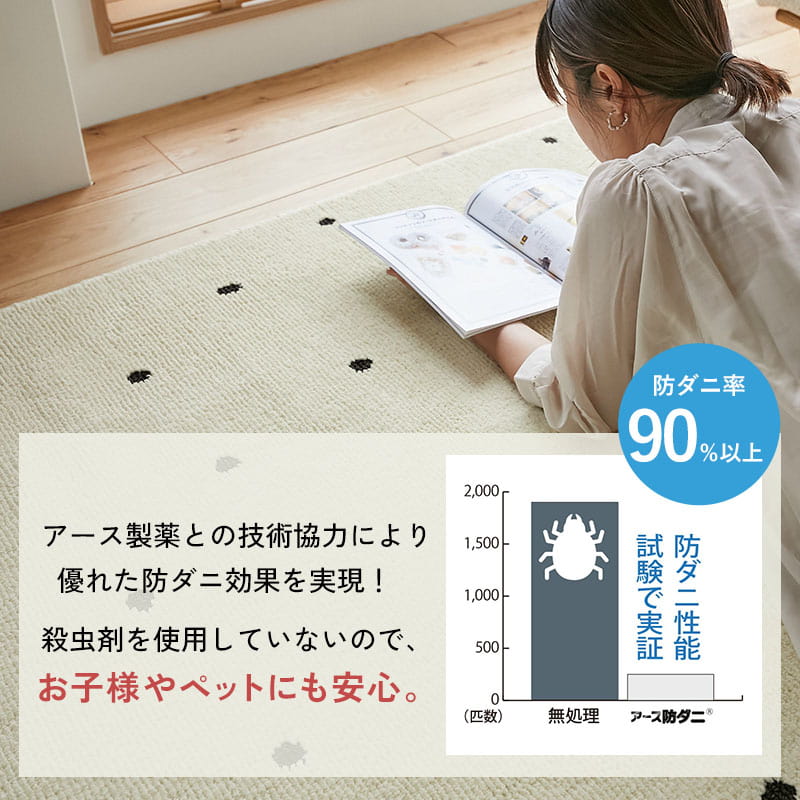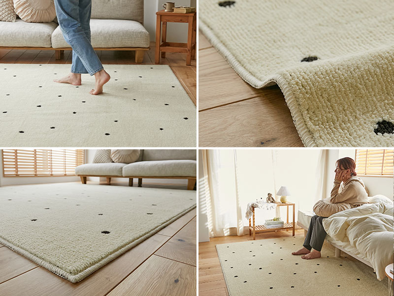 手書き調のドット模様がオシャレ!マシュマロタッチの国産高機能ラグ