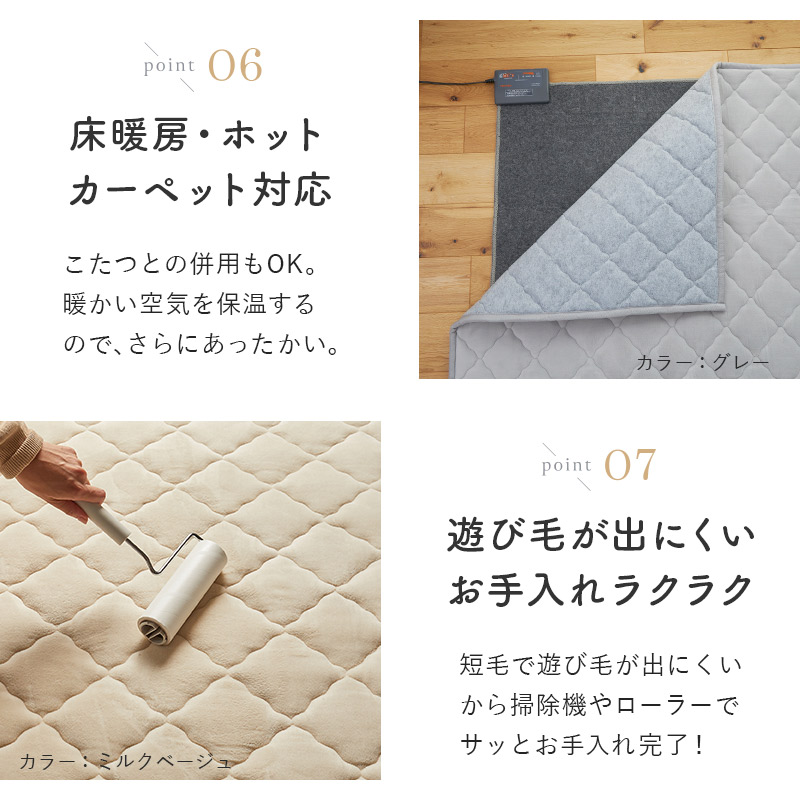 厚みがあるので防音効果・保温効果も期待でき、ホットカーペットがないご家庭でもポカポカに過ごせます。