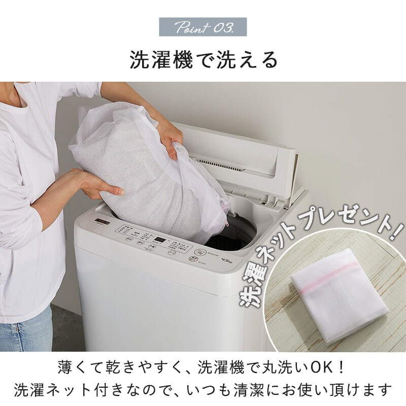 ※洗濯機をご使用の際は、洗濯機自体の容量サイズを厳守し、必ず洗濯ネットをご使用ください。