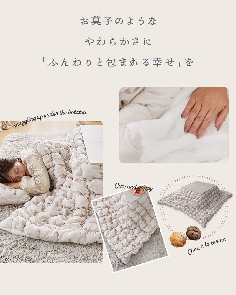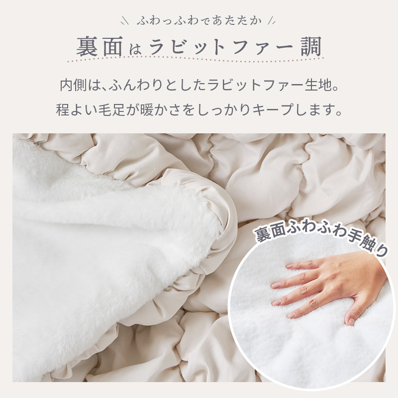 | 素材 | 表面:ポリエステル100% 中材:ポリエステル 裏面:ラビットファー |