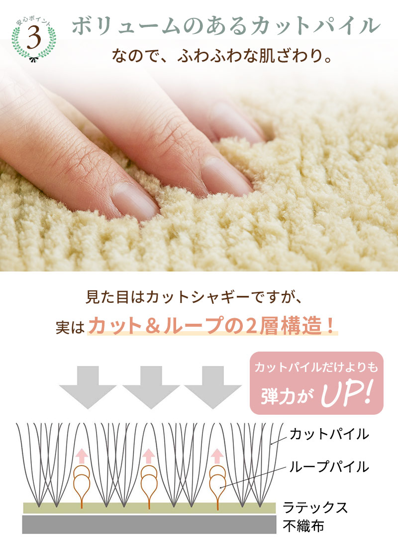 | 素材 | カット部分:ポリエステル100% ループ部分:ポリプロピレン100% |