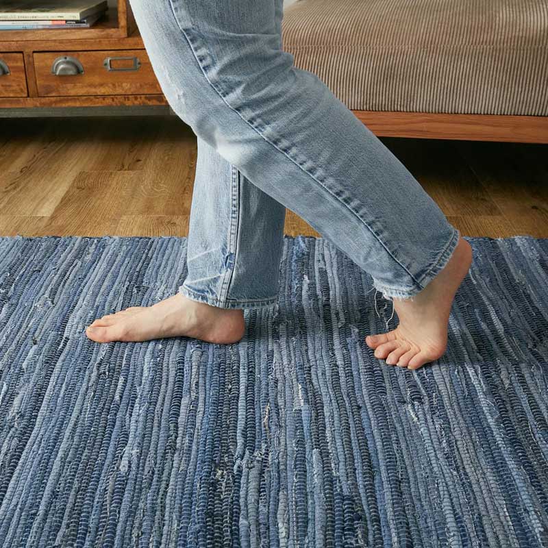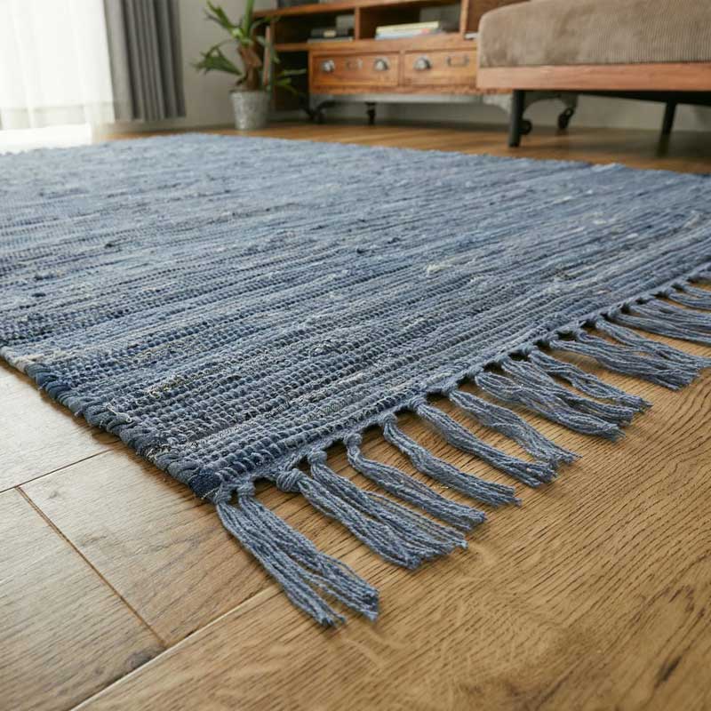 存在感は主役級!育てるほどに味が出る、ユーズドデニムを使用した表情豊かなデニムラグ。