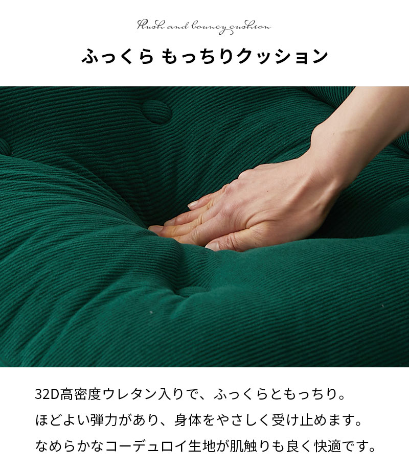 | 素材 | 表裏地:ポリエステル100% 中材:32Dウレタン、ホローファイバー 脚:スチール |