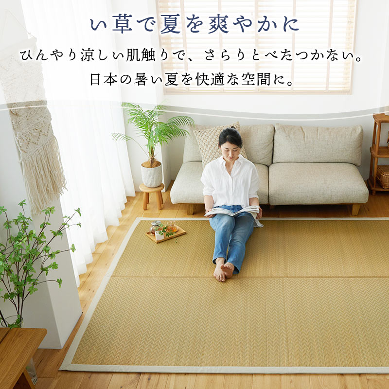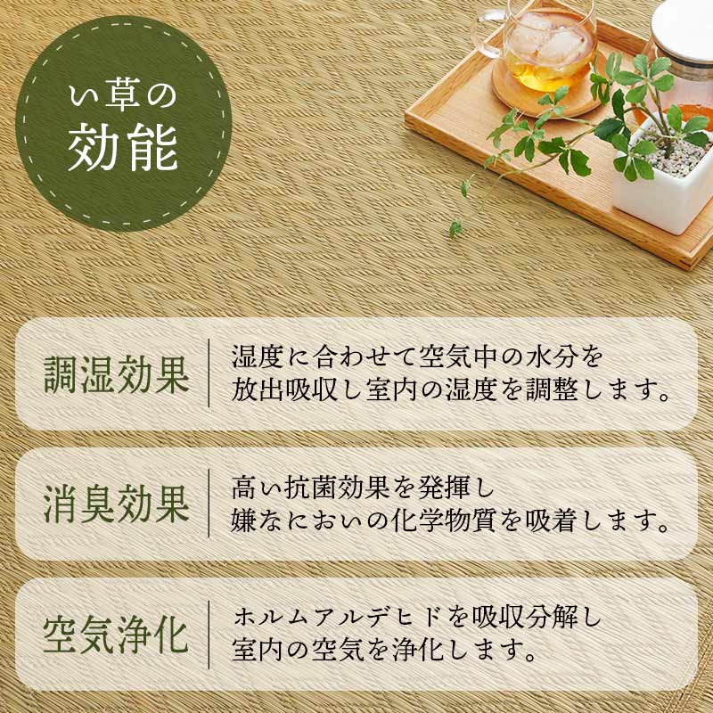 ※天然いぐさは紫外線・照明などでい草の葉緑素が変化し変色・退色する場合があります。い草の機能や品質・ご使用には差し支えありません。使い込むほどに渋味が出てきます。