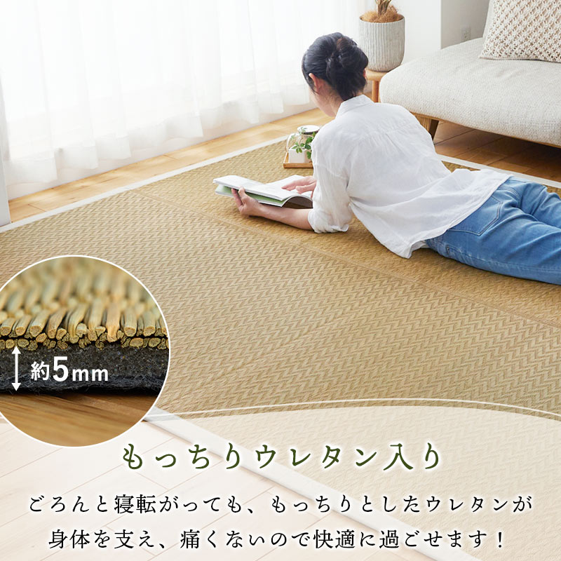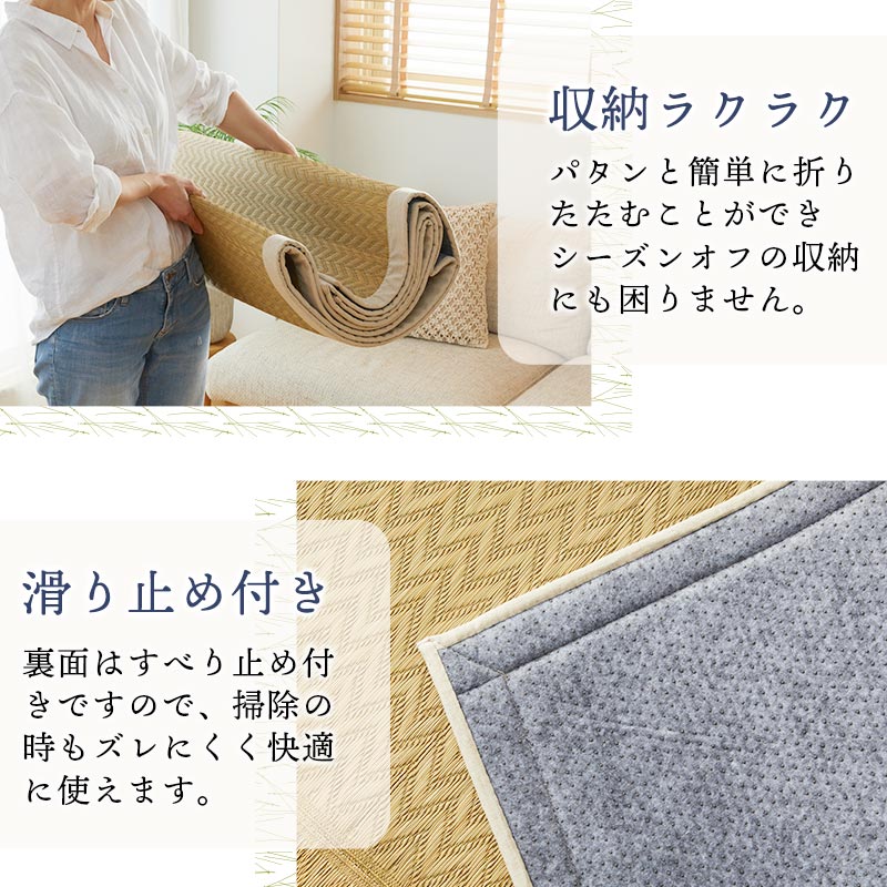| 素材 | 表面:い草100% 縁:麻54% 綿46% 裏面:不織布 |